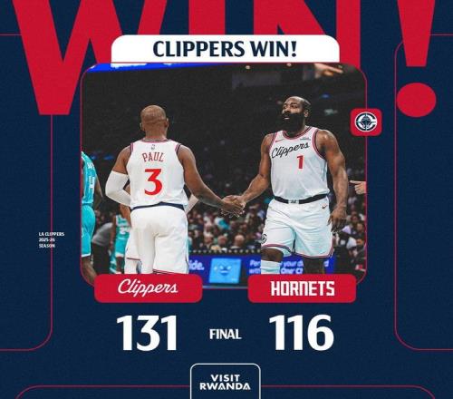 末节决战,快船在哈登的带领之下继续狂下三分雨,并得以将分差扩大至24分。黄蜂追分乏力,比赛逐渐失去了悬念。最终,快船以131比116完胜对手,就此止住了3连败。