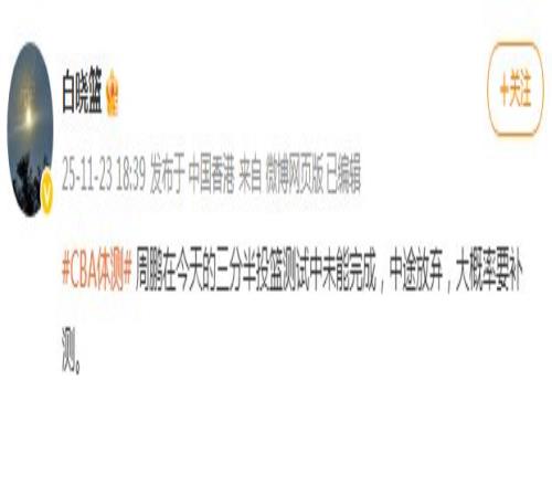 35岁老将周鹏大概率要补测:三分半投篮测试中途放弃未完成